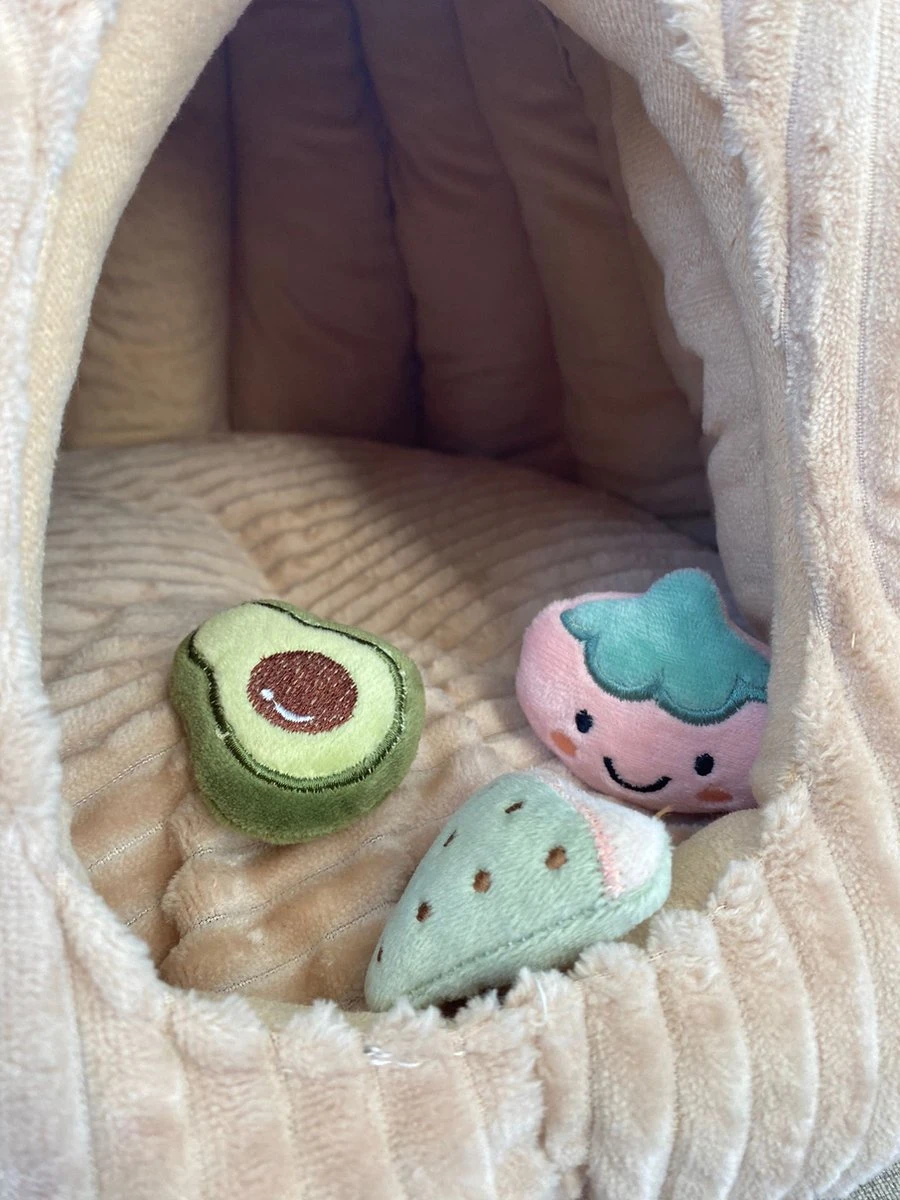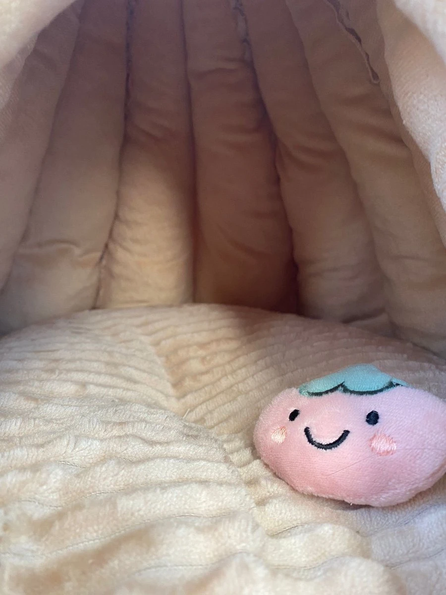 De pompoen vorm en de beige kleur met fluwele stof geven het mandje een sfeervolle en comfortabele uitstraling in je interieur. Het mandje is verwijderbaar en te wassen in de wasmachine op 30 graden.