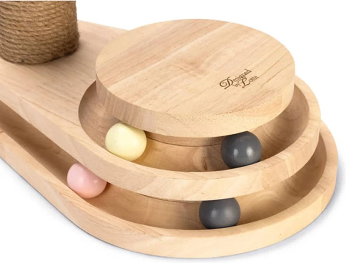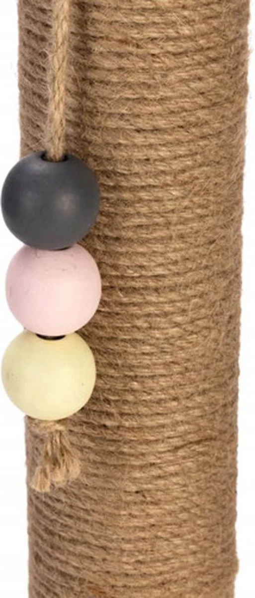 De krabpaal Inez is gemaakt van rubberhout en heeft een paal die omwikkeld is met jute touw. Dankzij het ontwerp is het perfect voor elk interieur. Naast de gebruikelijke krabpaal is er onderaan een leuke speeltoren bevestigd. De speeltoren is uitgerust met speelballen. Zodra je kat met zijn poot of snuit tegen de balletjes tikt, rollen ze in alle richtingen.