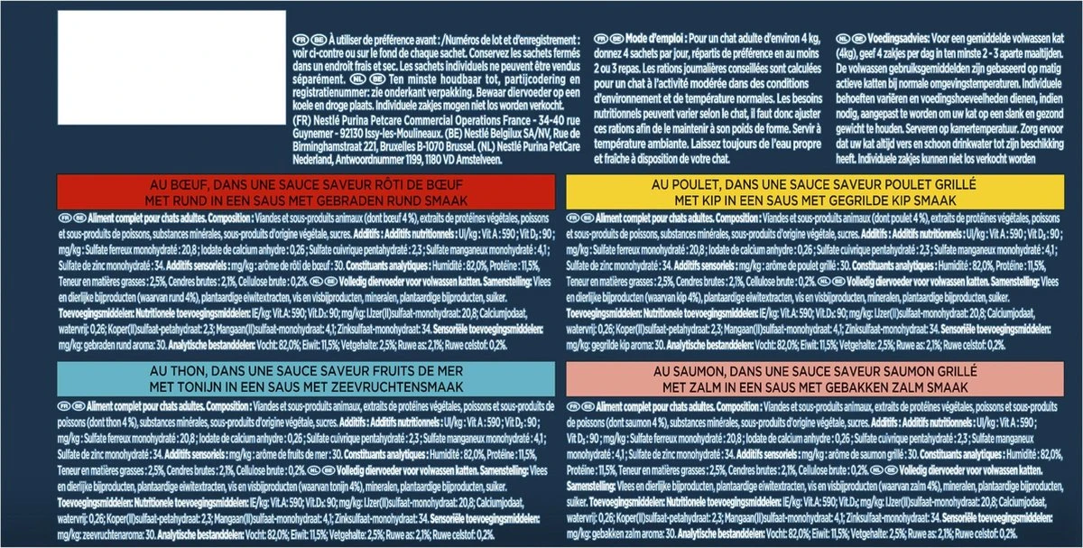 Als uw kat haar zin kreeg zou iedere maaltijd bestaan uit saus, saus en nog meer saus. Daarom heeft GOURMET Perle Sauce Delight gecreëerd: een gulle portie overheerlijke saus gecombineerd met fijne mini filets. Elk Sauce Delight recept begint met een gulle portie zachte, smaakvolle saus. Het is vervolgens zorgvuldig gecombineerd met fijne en zachte stukjes met kip, rund of vis. U kunt u goed voelen om dit iedere dag te serveren omdat ieder recept van GOURMET Perle Sauce Delight bereid is om uw kat te verwennen. Alle GOURMET Perle recepten bevatten geen toegevoegde kunstmatige kleurstoffen, conserveermiddelen en smaakstoffen.GOURMET Perle Sauce Delight : een hoogstaande maaltijd waarvan uw van saus houdende kat zal genieten.