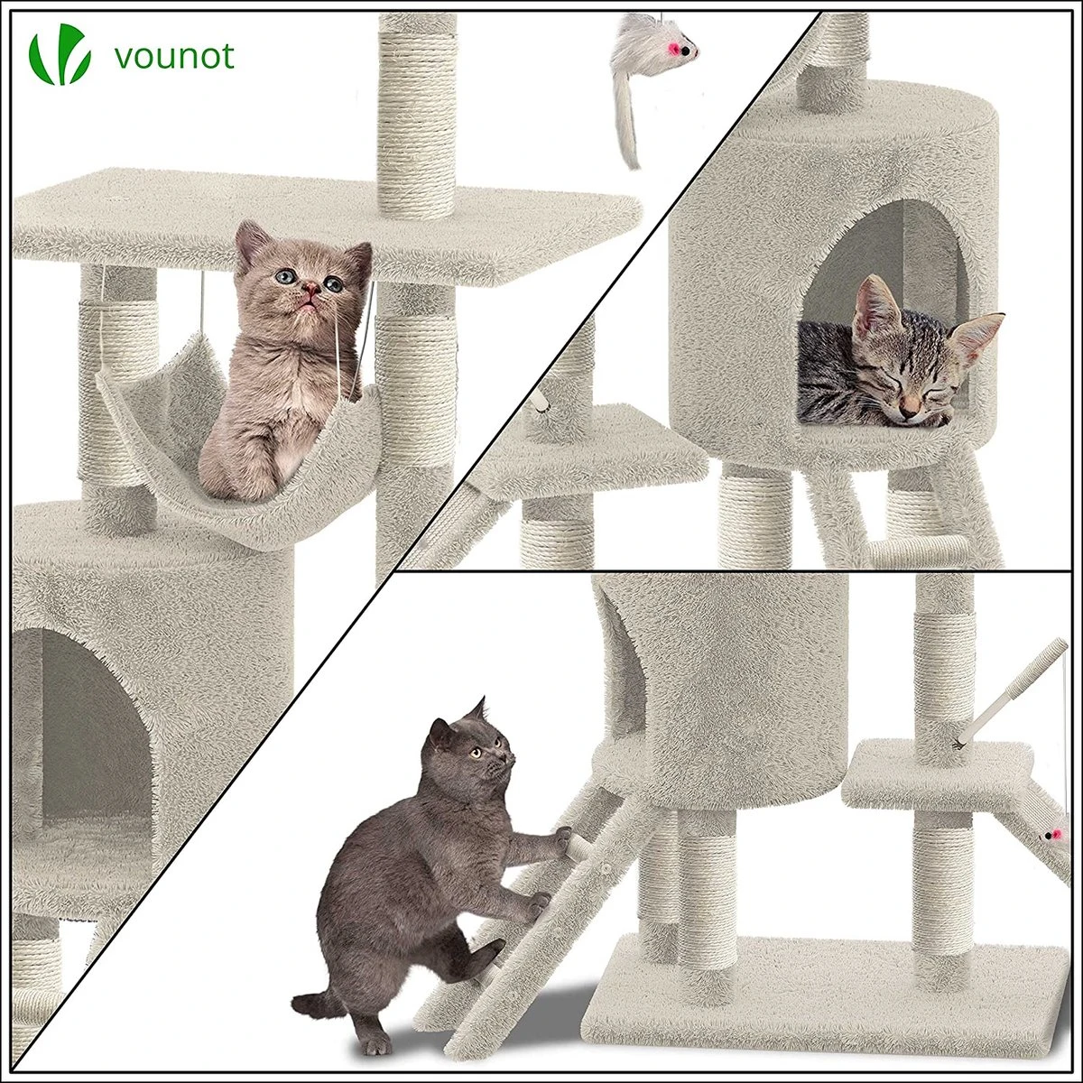 Multifunctioneel: onze krabpaal maakt het mogelijk om je kat te slapen, klauwen te maken, zich te rekken en hun omgeving vrij te observeren. Met 2 observatie- en springplatforms, 2 hangend speelgoed, 1 hol, 1 opstaphelling en meerdere krabpalen kunnen je katten van deze complete krabpaal genieten