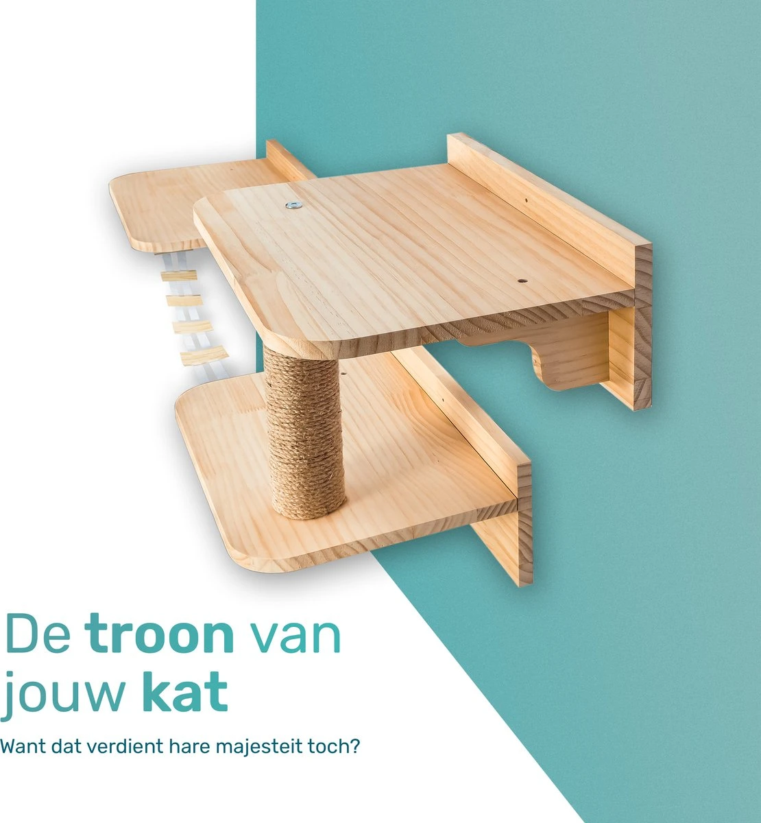 De klimwand bestaat uit 3 plateaus, een ladder en een krabpaal, zodat jouw kat heerlijk kan spelen én ontspannen. De bevestiging van de set gaat zeer eenvoudig en kan op een gewenste plek geplaatst worden. De elementen kun je op verschillende manieren bevestigen zodat jij zelf de indeling kan bepalen. Zo kun jij ervoor kiezen om de onderdelen eens in de zoveel tijd te wisselen voor een ander aanzicht.
