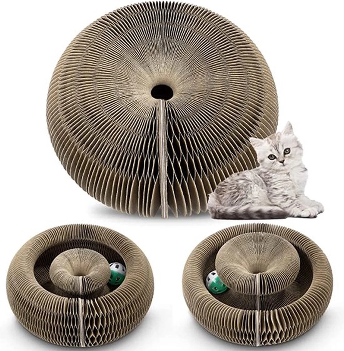 Verbind twee krabplanken met elkaar om het oppervlak van de krabplank te vergroten en de kat zal meer plezier hebben.
