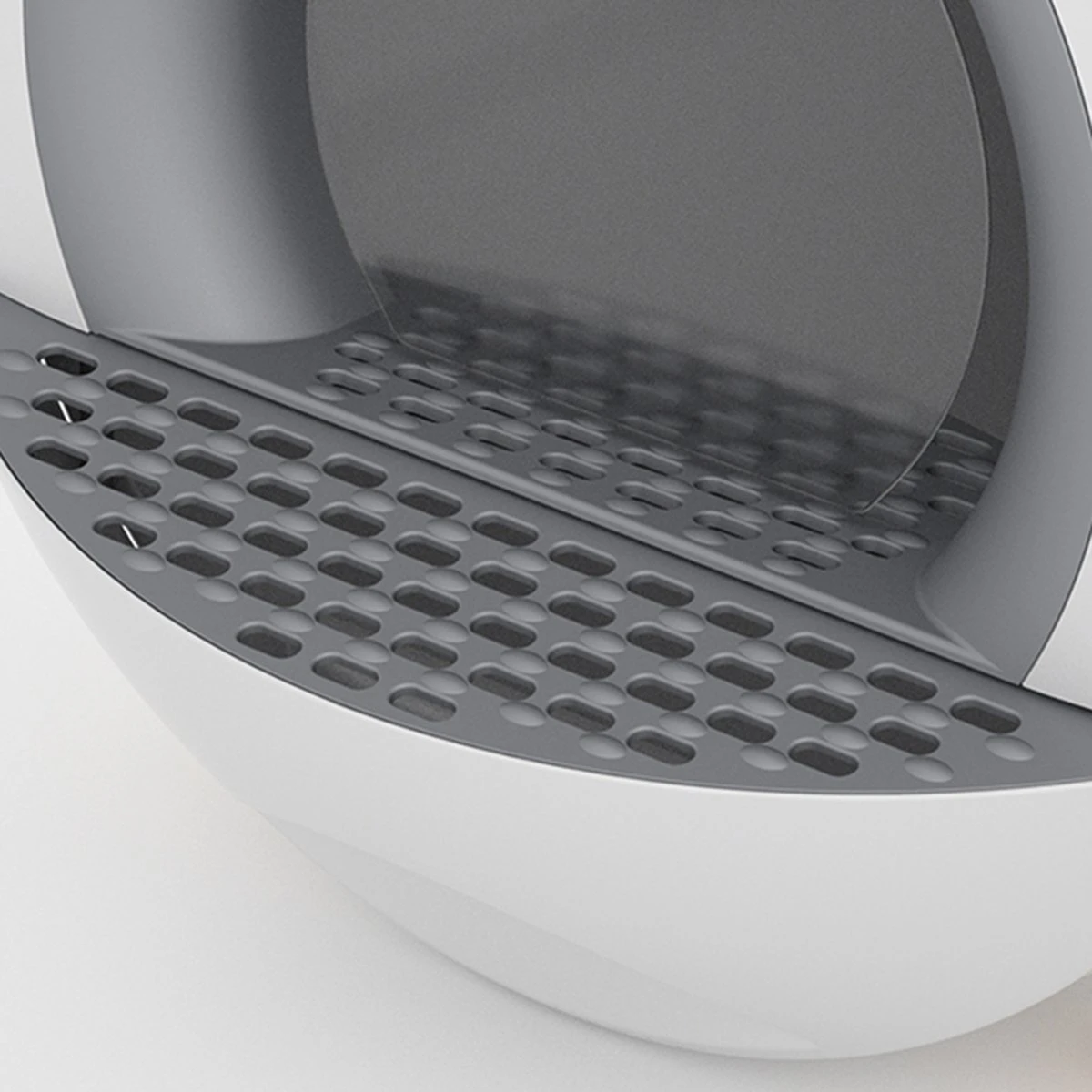 Het plateau aan de binnenkant zorgt ervoor dat wanneer jouw kat van het toilet afkomt, hij of zij een deel van het kattengrit onder de poten al kwijt is. Hierdoor blijft het grit waar het hoort en houd jij een schoon huis.